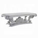 • See the extravagant style and classical design all over the Valkyrie Dining Room Collection. Bold, intricate scrollwork accent is highlighted throughout each piece in this collection. Antique Platinum Finish paired with muted gray tone brings attention to its gorgeous details. Rectangular dining table showcases a timeless pedestal-style silhouette while matching chairs feature button-tufted upholstery for lavish comfort. Bring a dramatic change to your home with the Valkyrie Dining Room Collection.