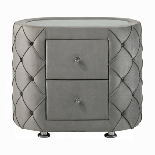ACME EastThe Perine Collection is luxuriously designed and upholstered in sumptuous gray velvet and features black piping. The hardwood wooden frame is desi...